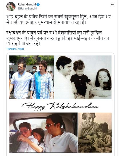 Rahul Gandhi congratulates Rakshabandhan
